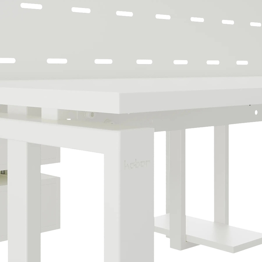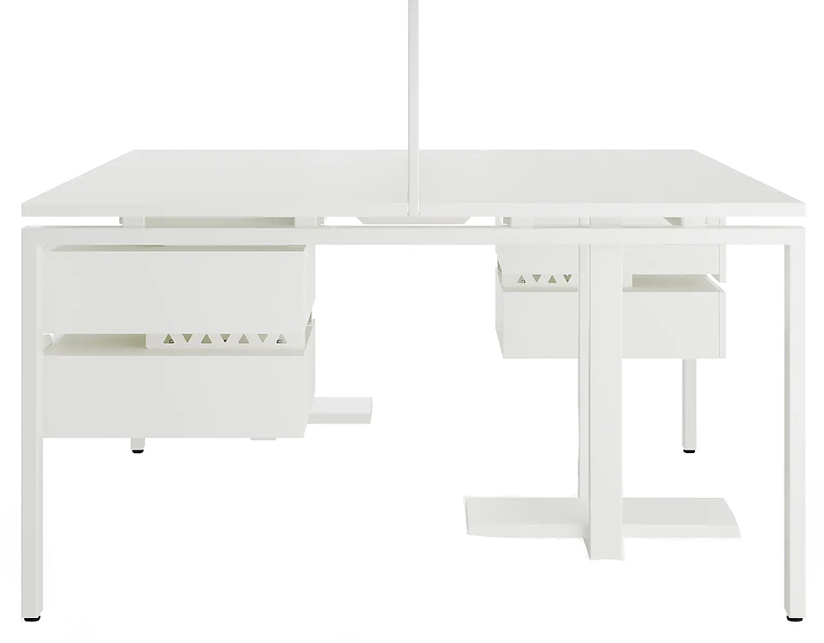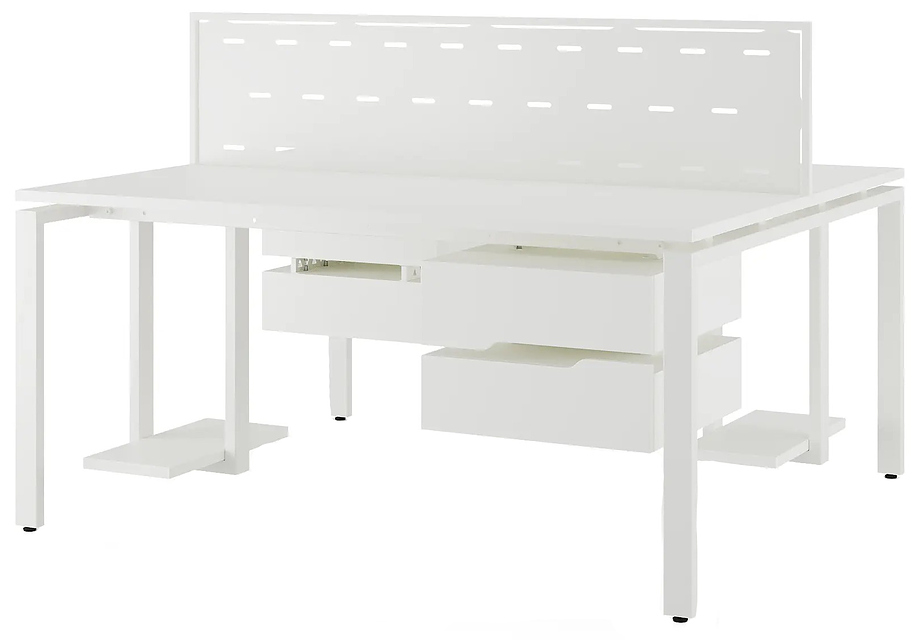Офисный стол Кобор P/2-140/140 white/premium предназначен для двух рабочих мест и идеально подходит для офисов и кабинетов руководителей. Модель оснащена П-образными опорами. Материал столешницы - прочный ЛДСП толщиной 25 мм, усиленная снизу металлическим каркасом, материал опор и каркаса - окрашенный металл.