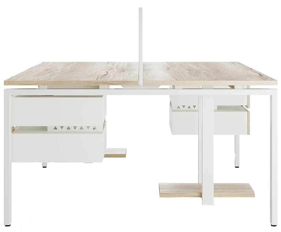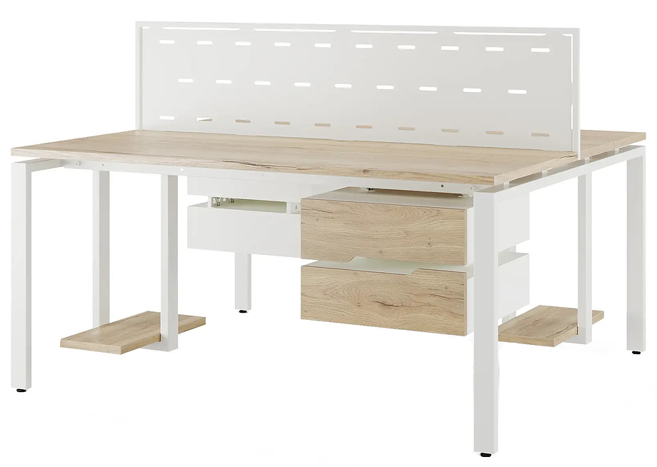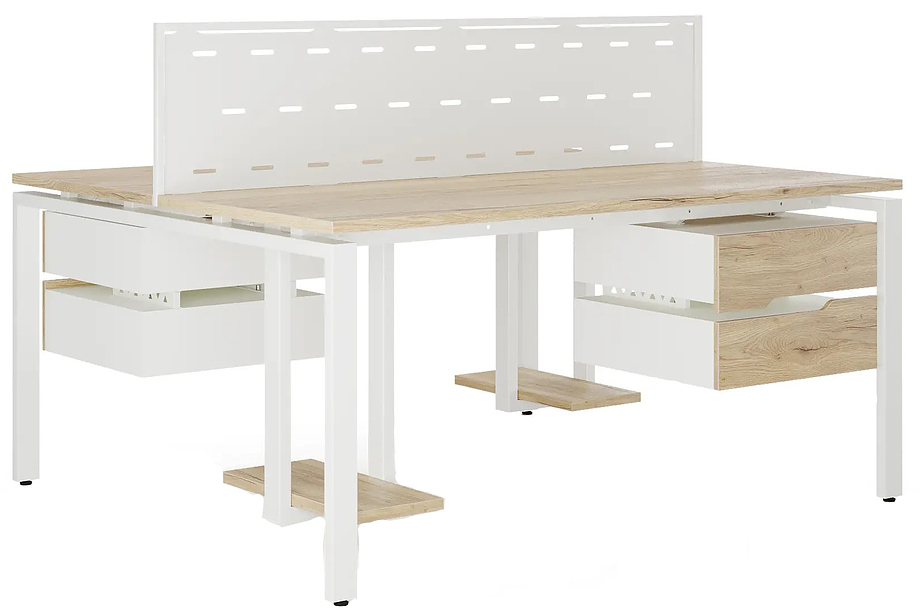 Офисный стол Кобор P/2-80/120 white/natural предназначен для двух рабочих мест и идеально подходит для офисов и кабинетов руководителей. Модель оснащена П-образными опорами. Материал столешницы - прочный ЛДСП толщиной 25 мм, усиленная снизу металлическим каркасом, материал опор и каркаса - окрашенный металл.