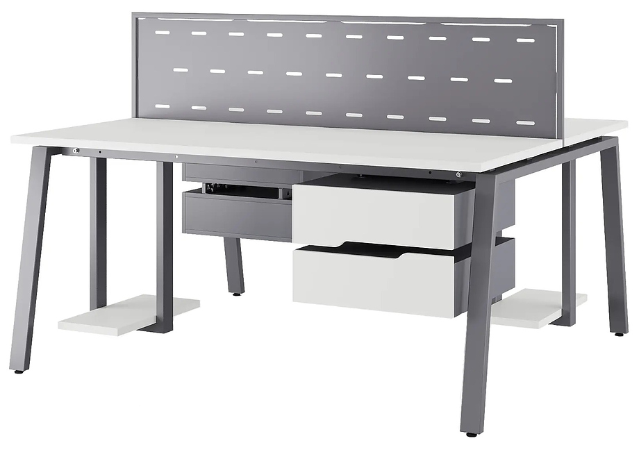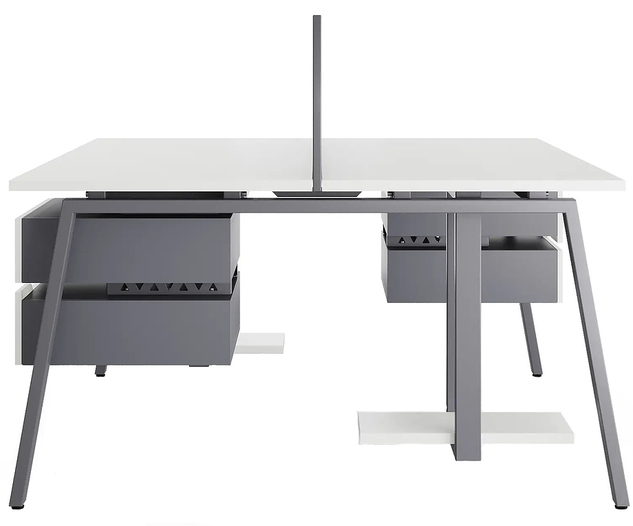 Офисный стол Кобор TA/2-80/120 graphite/premium предназначен для двух рабочих мест и идеально подходит для офисов и кабинетов руководителей. Модель оснащена А-образными опорами. Материал столешницы - прочный ЛДСП толщиной 25 мм, усиленная снизу металлическим каркасом, материал опор и каркаса - окрашенный металл.