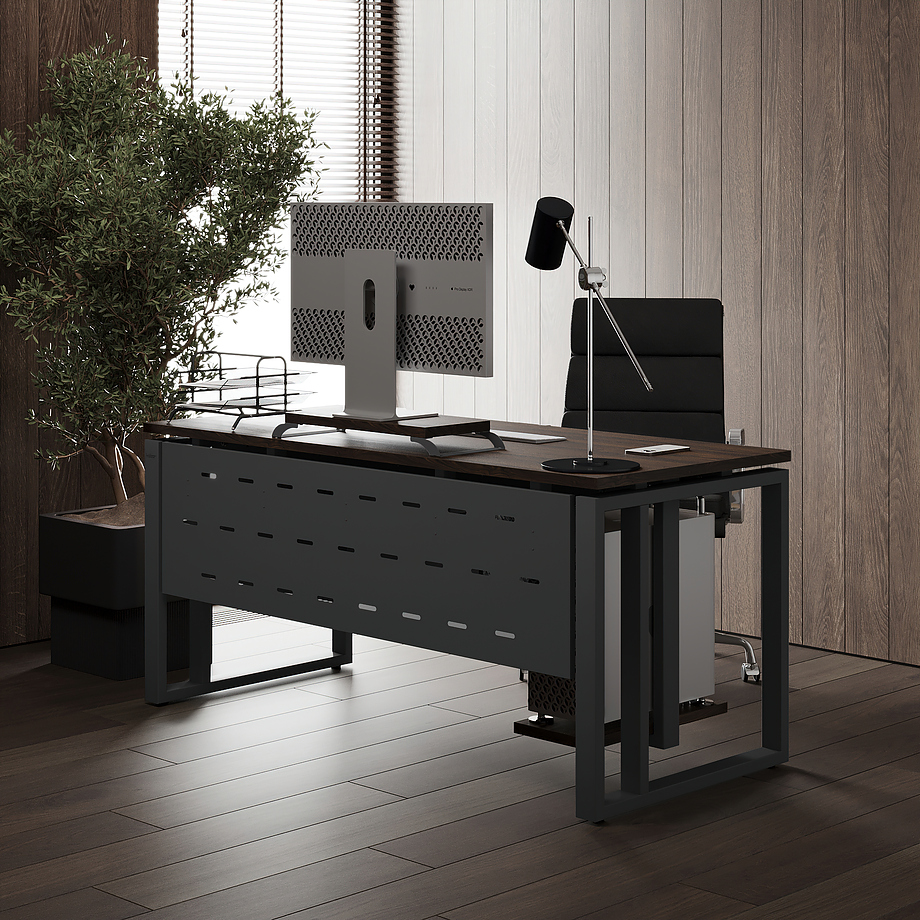 Офисный КОБОР O2-180/70 black/charlston стол используется в офисных помещениях и кабинетах руководителей. Модель оснащена усиленными вертикальной балкой O-образными опорами. Материал столешницы - прочный ЛДСП толщиной 25 мм, усиленная снизу металлическим каркасом, материал опор - окрашенный металл.