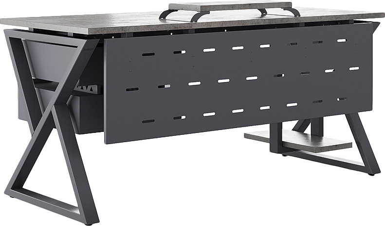 Офисный стол КОБОР W-120/60 graphite/chicago используется в офисных помещениях и кабинетах руководителей. Модель оснащена W-образными опорами. Материал столешницы - прочный ЛДСП толщиной 25 мм, усиленная снизу металлическим каркасом, материал опор - окрашенный металл.