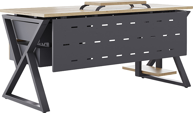Офисный стол КОБОР W-140/70 graphite/natural используется в офисных помещениях и кабинетах руководителей. Модель оснащена W-образными опорами. Материал столешницы - прочный ЛДСП толщиной 25 мм, усиленная снизу металлическим каркасом, материал опор - окрашенный металл.