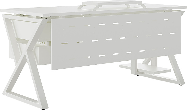 Офисный стол КОБОР W-140/70 white/premium используется в офисных помещениях и кабинетах руководителей. Модель оснащена W-образными опорами. Материал столешницы - прочный ЛДСП толщиной 25 мм, усиленная снизу металлическим каркасом, материал опор - окрашенный металл.