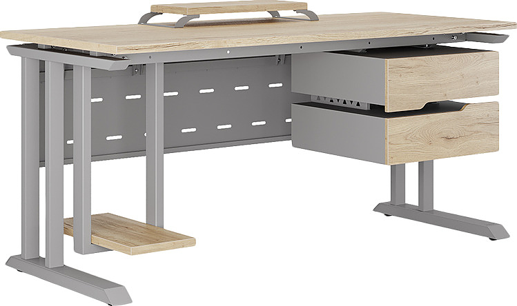 Офисный стол КОБОР L1-140/70 aluminum/natural используется в офисных помещениях и кабинетах руководителей. Модель оснащена L-образными опорами. Материал столешницы - прочный ЛДСП толщиной 25 мм, усиленная снизу металлическим каркасом, материал опор - окрашенный металл.