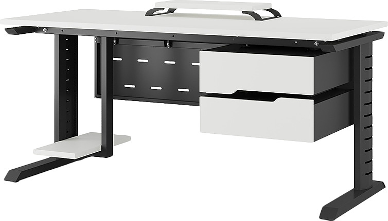 Офисный стол КОБОР L2-140/70 black/premium используется в офисных помещениях и кабинетах руководителей. Модель оснащена L-образными опорами с декоративной вставкой на боковинах. Материал столешницы - прочный ЛДСП толщиной 25 мм, усиленная снизу металлическим каркасом, материал опор - окрашенный металл.
