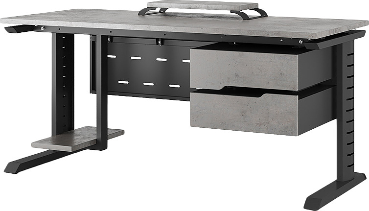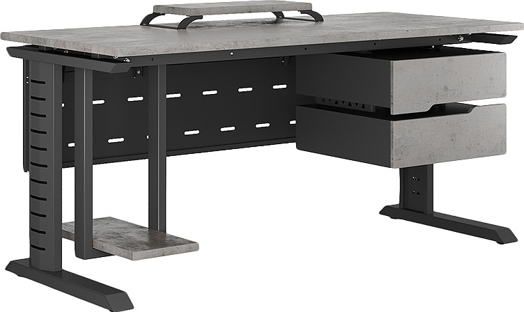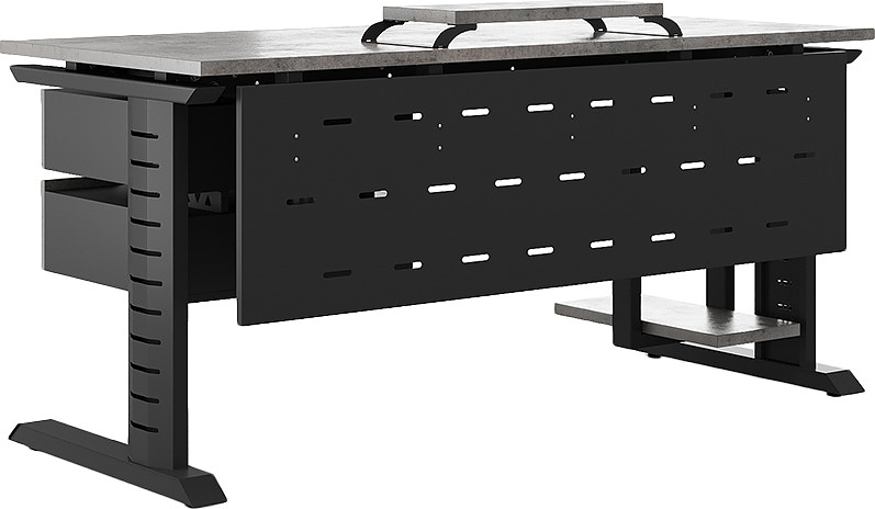 Офисный стол КОБОР L2-120/60 black/chicago используется в офисных помещениях и кабинетах руководителей. Модель оснащена L-образными опорами с декоративной вставкой на боковинах. Материал столешницы - прочный ЛДСП толщиной 25 мм, усиленная снизу металлическим каркасом, материал опор - окрашенный металл.