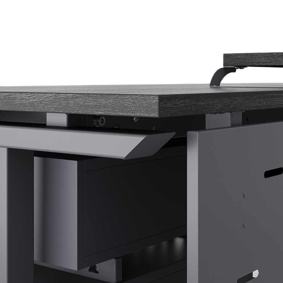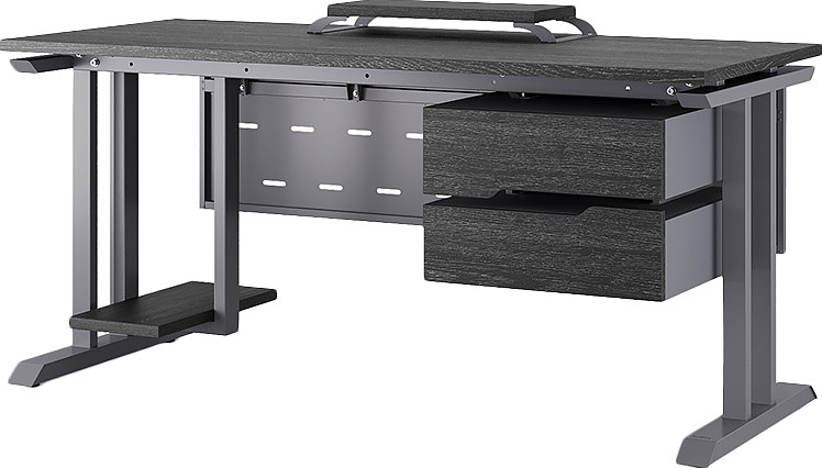 Офисный стол КОБОР T-120/60 graphite/wood используется в офисных помещениях и кабинетах руководителей. Модель оснащена Т-образными опорами. Материал столешницы - прочный ЛДСП толщиной 25 мм, усиленная снизу металлическим каркасом, материал опор - окрашенный металл.