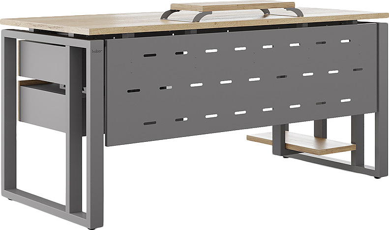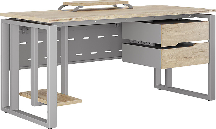 Офисный стол КОБОР O2-140/70 aluminum/natural используется в офисных помещениях и кабинетах руководителей. Модель оснащена О-образными опорами и усиленной вертикальной балкой. Материал столешницы - прочный ЛДСП толщиной 25 мм, усиленная снизу металлическим каркасом, материал опор - окрашенный металл.