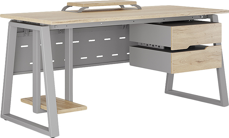 Офисный стол КОБОР TR-140/70 aluminum/natural используется в офисных помещениях и кабинетах руководителей. Модель оснащена трапециообразными опорами. Материал столешницы - прочный ЛДСП толщиной 25 мм, усиленная снизу металлическим каркасом, материал опор - окрашенный металл.