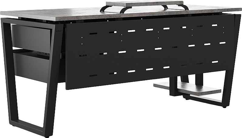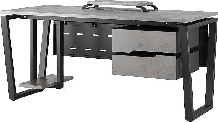 Офисный стол КОБОР OTR-120/60 black/chicago используется в офисных помещениях и кабинетах руководителей. Модель оснащена опорами в форме обратной трапеции. Материал столешницы - прочный ЛДСП толщиной 25 мм, усиленная снизу металлическим каркасом, материал опор - окрашенный металл.