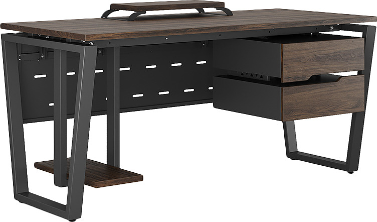 Офисный стол КОБОР OTR-140/70 black/charlston используется в офисных помещениях и кабинетах руководителей. Модель оснащена опорами в форме обратной трапеции. Материал столешницы - прочный ЛДСП толщиной 25 мм, усиленная снизу металлическим каркасом, материал опор - окрашенный металл.