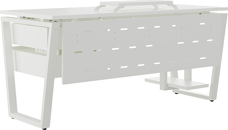 Офисный стол КОБОР OTR-140/70 white/premium используется в офисных помещениях и кабинетах руководителей. Модель оснащена опорами в форме обратной трапеции. Материал столешницы - прочный ЛДСП толщиной 25 мм, усиленная снизу металлическим каркасом, материал опор - окрашенный металл.