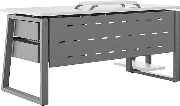 Офисный стол КОБОР TS1-120/60 aluminum/premium используется в офисных помещениях и кабинетах руководителей. Модель оснащена опорами в форме наклонной трапеции. Материал столешницы - прочный ЛДСП толщиной 25 мм, усиленная снизу металлическим каркасом, материал опор - окрашенный металл.