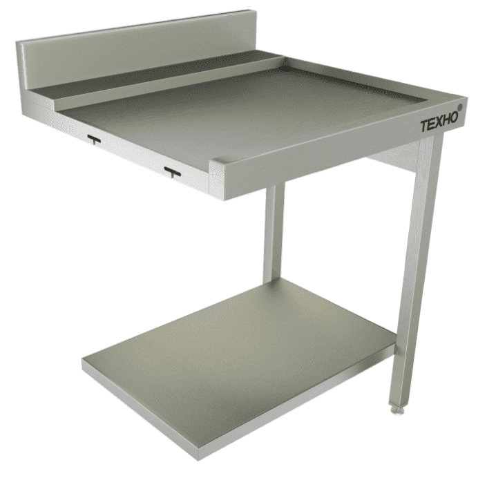 Навесной стол Техно-ТТ СПК-223/707-П предназначен для совместного использования с посудомоечными машинами Apach AC800 для расстановки и хранения посуды и кухонного инвентаря в моечных отделениях на предприятиях общественного питания и торговли. Модель оснащена бортом и полкой. Разборный каркас и столешница выполнены из нержавеющей стали AISI 304.