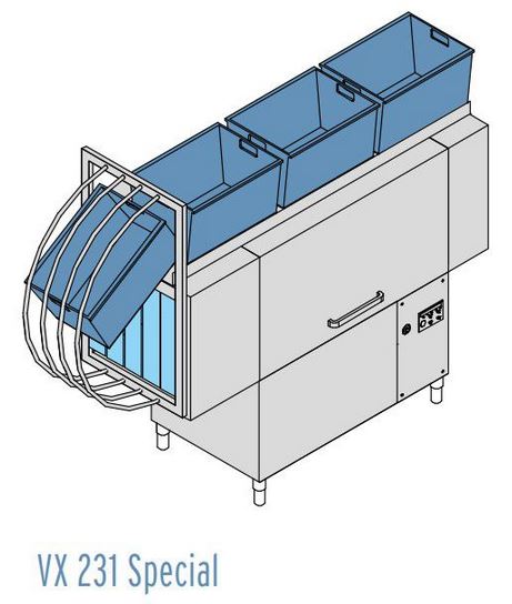 Туннельная машина DIHR VX 231 SX SPECIAL+DDE используется на предприятиях общественного питания, торговли, пищевых производствах, в медицинских и муниципальных учреждениях для мойки ящиков. Модель оснащена электронным управлением, вертикальными самоочищающимися моечными насосами, автотаймером, движением слева-направо и ножками. Материал штампованной кислотоустойчивой ванны - высококачественная нержавеющая сталь AISI 316, материал фильтров - нержавеющая сталь.