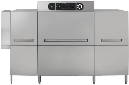 Тоннельная посудомоечная машина Comenda AC2EP5 NEXT/сушка/CWV/рекуператор/LR используется на предприятиях общественного питания, торговли и пищевых производствах для мытья посуды и подносов. Модель оснащена управлением управления TECH+, двумя зонами мытья и ополаскивания, ТЭНами, бойлером, контроллером температуры воды, душирующими устройствами, автоматическим циклом самоочистки, автоматическим отключением при открытой дверце, дополнительной мощностью для подключения к холодной воде, сушкой, теплорекуператором и защитой от перегрузок. Материал корпуса, бака, коромысла, фильтров, бойлер - высококачественная нержавеющая сталь AISI 304, материал труб водоснабжения - нержавеющая сталь.