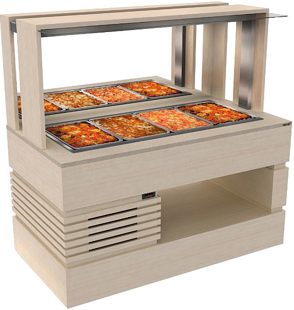 Техно-ТТ БМВ-213/1616 используется на предприятиях общественного питания и торговли для выкладки, хранения и раздачи продуктов. Каркас - оцинкованная сталь, фасад выполнен из шпона и МДФ, столешница изготовлена из искусственного камня. В модели предусмотрена ниша.