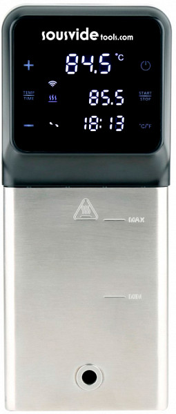 Погружной термостат SousVideTools SVT-01005EU используется для приготовления блюд при низких температурах. Ингредиенты, запечатанные в вакуумную упаковку, погружаются в водяную баню. Вода мягко циркулирует вокруг пищи и доводит её до нужной температуры и готовности. Большая сенсорная панель управления (HD, 4''). Процесс приготовления происходит при помощи приложения iVide - вы только выбираете тип продукта, время и температуру приготовления. Коллекция из 600+ рецептов, память рецепта, история приготовления, возможность управления несколькими устройствами с одного приложения, звуковые и визуальные уведомления об окончании готовки и промежуточных результатах.