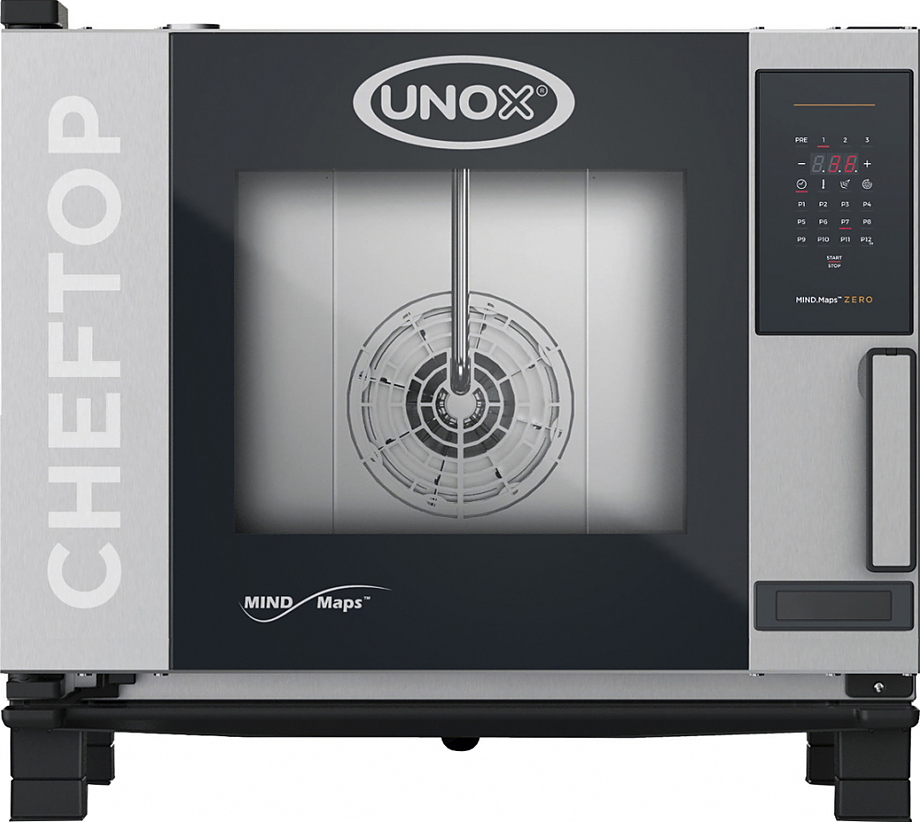 Пароконвектомат UNOX XEVC-0511-EZRM серии CHEFTOP MIND.Maps™ ZERO предназначен для приготовления различных блюд, выпечки хлебобулочных и кондитерских изделий на предприятиях общественного питания и торговли, в пекарнях и кондитерских. Модель оснащена встроенной в дверь светодиодной LED-подсветкой и C-образными с зубчатыми нишами направляющими. Внутреннее открывающееся стекло облегчает чистку и обеспечивает максимальную гигиену. Камера с закругленными углами выполнена из нержавеющей стали AISI 304, направляющие - из профилированной стали, дверной замок - из высокопрочного самосмазывающегося технополимера, внутренний штифт дверной ручки - из углеродного волокна.