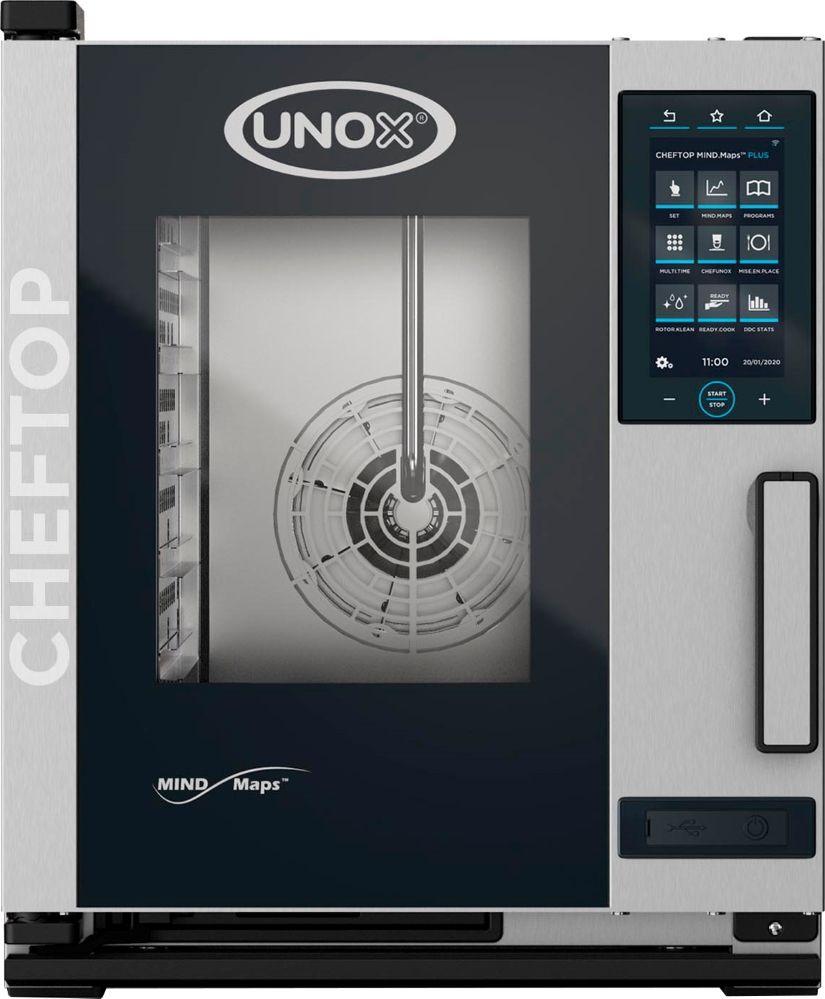 Пароконвектомат UNOX XECC-0523-EPRM серии COMPACT CHEFTOP MIND.Maps™ PLUS предназначен для приготовления различных блюд, выпечки хлебобулочных и кондитерских изделий на предприятиях общественного питания и торговли, в пекарнях и кондитерских. Модель оснащена встроенной в дверь светодиодной LED-подсветкой и C-образными с зубчатыми нишами направляющими. Внутреннее открывающееся стекло облегчает чистку и обеспечивает максимальную гигиену. Камера с закругленными углами выполнена из нержавеющей стали AISI 304, направляющие - из профилированной стали, дверной замок - из высокопрочного самосмазывающегося технополимера, внутренний штифт дверной ручки - из углеродного волокна.