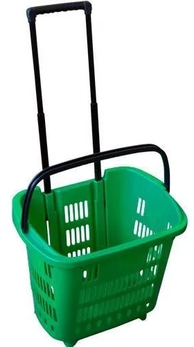 Покупательская тележка EKSI PBT34 GN используется в крупных гипермаркетах и магазинах самообслуживания для перемещения продуктов и других товаров. Модель оснащена телескопической ручкой для перемещения по полу, пластиковой ручкой для ношения и подъема и колесиками. Материал корпуса - пластик.
